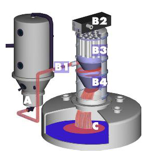 1、氣動控制器控制真空泵B2啟動,在分離倉內產生真空,迅速將空氣和物料從A(進料位置),經軟管或管子從B1(吸料口)進入到B4(真空輸送設備)中,從而達到輸送物料的目的。