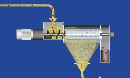 物料在定量給料裝置的作用下,由進料口進入旋分篩。喂料螺桿將物料送入旋轉倉。在旋轉倉內,旋轉葉片旋轉時形成氣流,物料在氣流的作用下通過篩網以實現篩分、過濾。合格的物料從篩網中穿過并由合格物料出口排放到物料的儲存倉內。而超規格的粗顆粒則經不合格物料出口排出,可以通過收集后進行再處理。旋轉倉的頂端帶有擋板,避免合格物料被當做雜質從不合格物料出口排出。旋分篩的篩網具有一定的韌性,會隨著氣流產生振動,使物料不會淤積在篩網表面,保證其篩分能力不會隨時間的推移而下降。